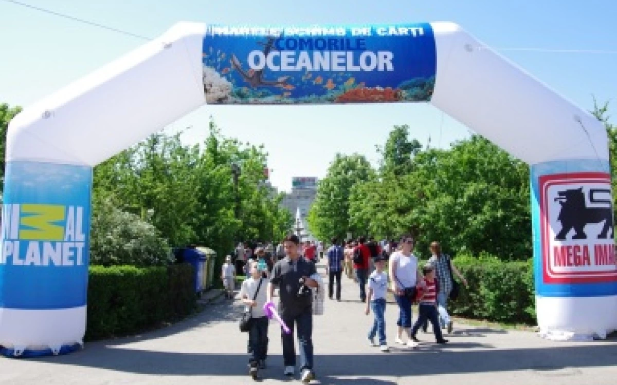 In cadrul aceleiasi campanii, Mega Image si Animal Planet au organizat sambata, 28 aprilie, in Parcul Unirii din Bucuresti evenimentul „Marele schimb de carti Comorile Oceanelor”, care a reunit cateva mii de colectionari. Pe langa schimbul de carti, organizatorii au pregatit pentru participanti un concert Alina Sorescu, numere de magie, clovni care au modelat baloane, pictura pe fata, trupa de dans, concursuri cu premii si alte surprize.