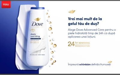 Unilever lansează gama de geluri de dus Dove Advanced Care, cu o formulă revoluționară bazată pe o tehnologie inovatoare, 24h Renewing...