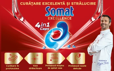 Somat Excellence 4în1, noua formulă revoluționară pentru vase curate și strălucitoare